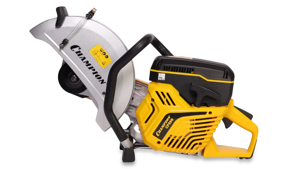 Бензорез CHAMPION CP350 мощностью 3,5 кВт предназначен для мокрой и сухой резки стали, бетона и асфальта. На инструмент устанавливается диск диаметром 350 мм (в комплект не входит) с посадочным диаметром 20 либо 25,4 мм. Система амортизации снижает вибрацию и делает работу более комфортной. Система фильтрации состоит из двух фильтрующих элементов (бумажный + поролоновый) для лучшей очистки воздуха в сложных условиях эксплуатации. Конструкция бензореза позволяет переставлять режущий узел с внутренней стороны на внешнюю.