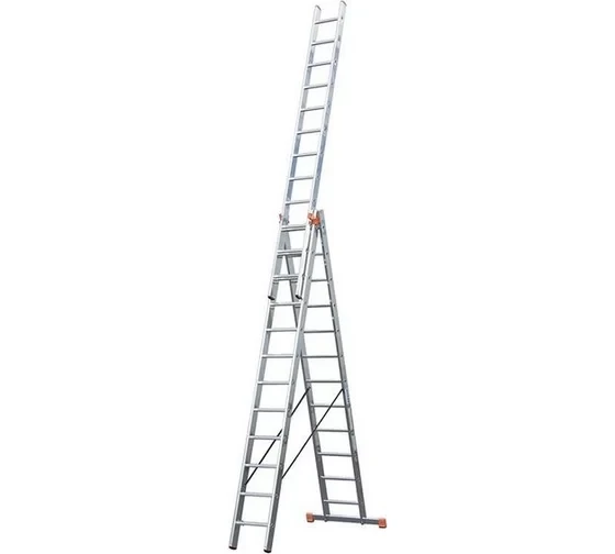 Трехсекционная универсальная лестница 3х12 предназначена для проведения работ на высотах от 4.4 до 9.3 метров.
